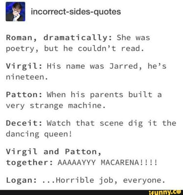 Thank you to, https://twitter.com/incorrectmarvel http://incorrectzeldaquotes.tumblr.com http://incorrectfireemblemquotes.tumblr.com ...
